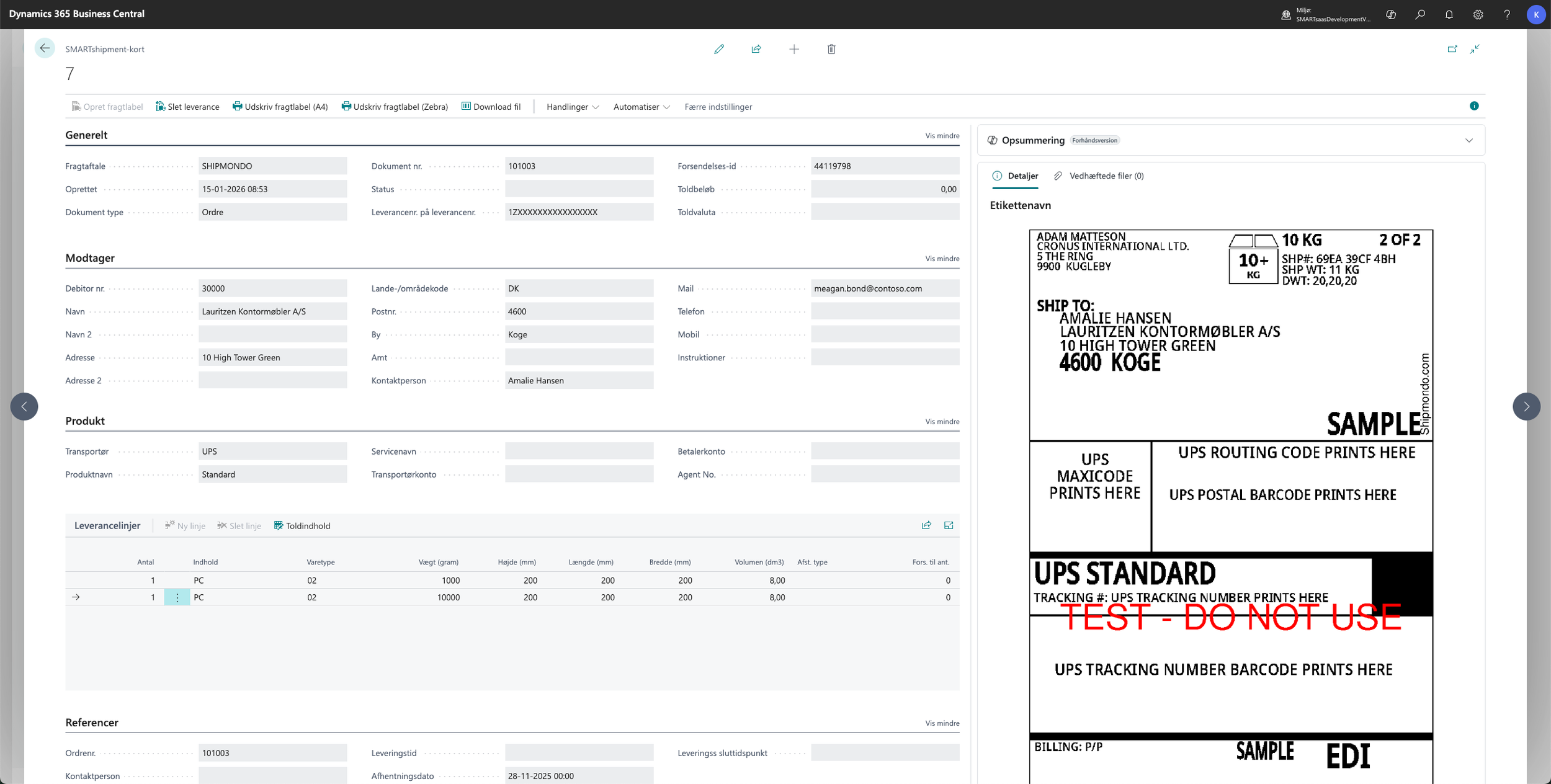 Opret og udskriv fragtlabels direkte fra Microsoft Dynamics 365 Business Central SaaS