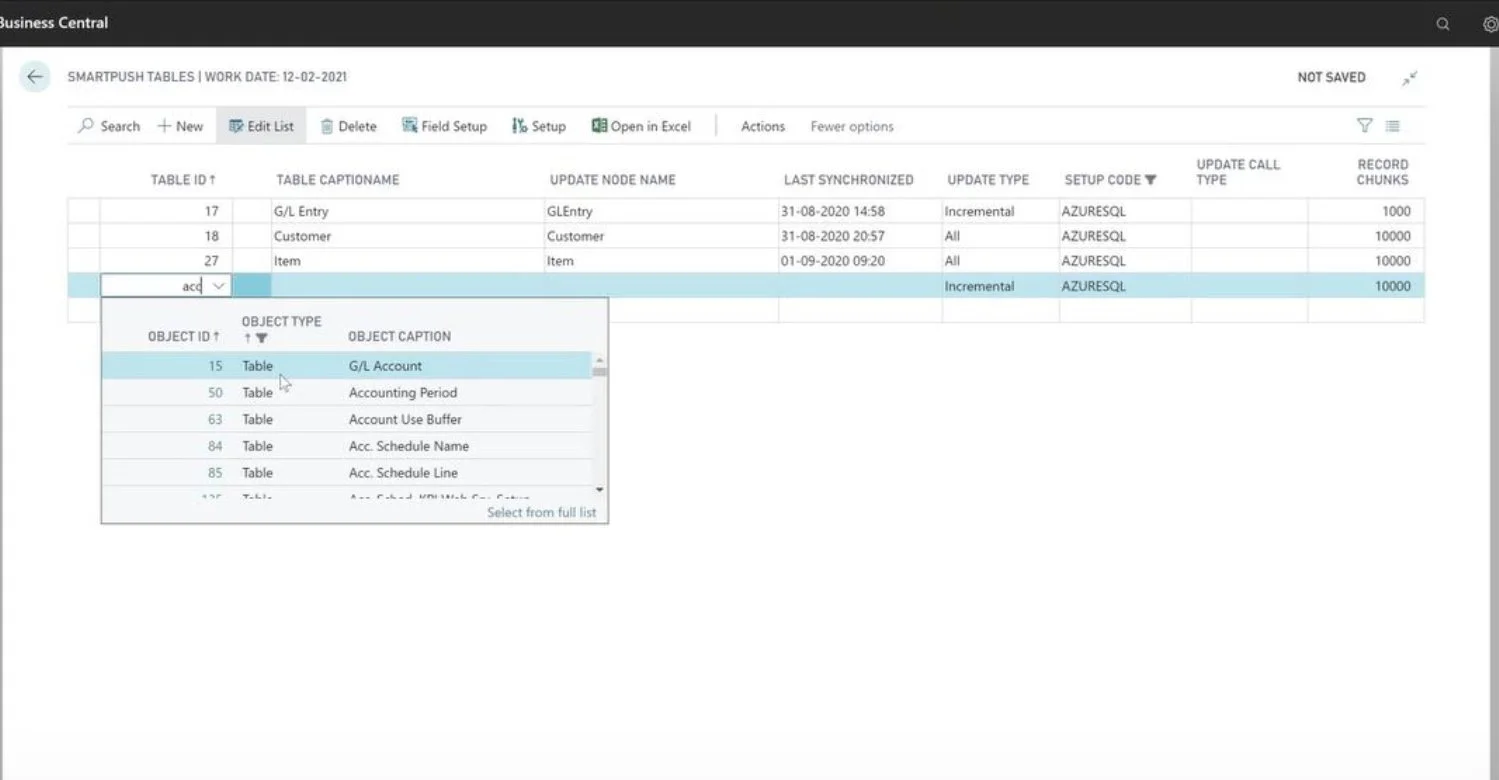 Ud over at effektivisere jeres synkronisering af nye data, kan SMARTpush også synkronisere alle data i en eller flere Business Central tabeller, og distribuere dem til Power BI og SQL-servere.